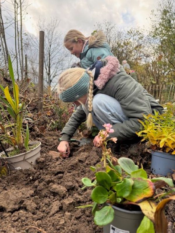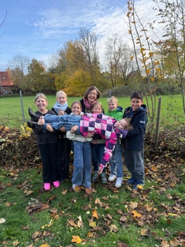 So wurden bisher Schutzanzüge anprobiert, ein zu betreuendes Bienenvolk ausgesucht und der Name BIENINE vergeben, ein Namensschild gestaltet, der Aufbau eines Bienenstockes untersucht und Waben daraus entnommen, tote Bienen und Wespen betrachtet, verlassene Wespennester untersucht, Bienen gefüttert, Medikamente gegen die Varroamilbe verabreicht und viel über den Umgang mit Bienen, deren Nahrung und Vermehrung gelernt. Nun wissen auch alle AG-Teilnehmer*Innen was zum Beispiel ein Smoker, Stockmeißel und Wetterschutzdeckel ist und wie man diese Dinge verwendet. Leider mussten die Bienen vor den Herbstferien in die Winterpause verabschiedet werden und sind erst im nächsten März wieder dazu bereit, den Bienenstock zu verlassen. Auch wenn bis dahin keine Bienen zu betrachten und betreuen sind, warten viele weitere und interessante Aufgaben auf die Teilnehmer*Innen der Bienen-AG. Aktuell ging es mit dem Anrufbus zum Pflanzenhof Stadthagen. Dort wurden gemeinsam jede Menge bienenfreundliche Stauden ausgesucht, die in einem neuen Bienenbeet ihren Platz finden sollen, das in den nächsten Wochen angelegt wird. Da soll es dann im Frühling und Sommer blühen, sodass sich dort alle Wildbienen, Hummeln und viele andere Insekten wohlfühlen und summen. Viel gab es auf dem Pflanzenhof zu entdecken. Ein Mitarbeiter hat während eines spannenden Rundgangs leicht verständliche Infos über heimische und bienenfreundliche Pflanzen, Bäume und Gehölze erzählt. Alle waren begeistert und haben -trotz Regen- mit viel Freude den Einkaufswagen randvoll mit Stauden gefüllt. Die Pflanzaktion kann also beginnen.